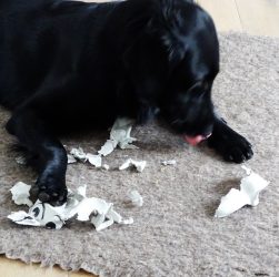 Vor ein paar Wochen ist Frauchen schon wieder in einen Deko-Wahn verfallen. Jetzt hängen hier überall bunte Eier (an die …